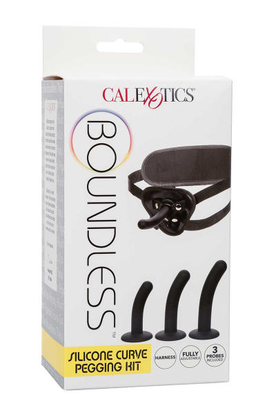 Ce kit spécial pegging complet comprend un harnais universel avec sangles ajustables et trois godes lisses et courbés de tailles différentes en silicone premium.